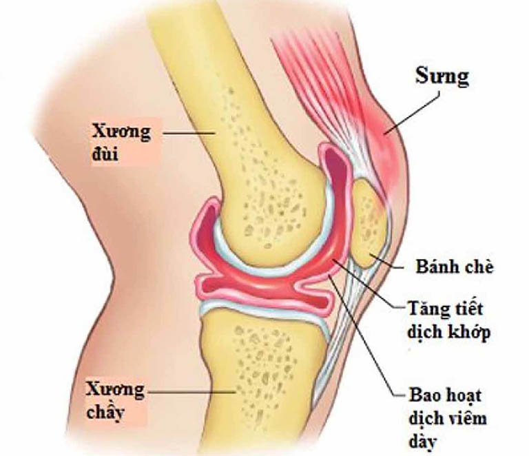 • Bại liệt, tàn phế: Khi dịch khớp tăng lên không kiểm soát trong thời gian dài, gây tràn dịch khớp, yếu khớp, phá hủy cấu trúc của khớp. Đặc biệt là khớp gối khi xảy ra viêm túi hoạt dịch mà không chữa trị sớm, người bệnh có nguy cơ bị bại liệt rất cao.