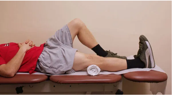 - Cuộn một chiếc khăn và đặt bên dưới đầu gối của chân đang duỗi